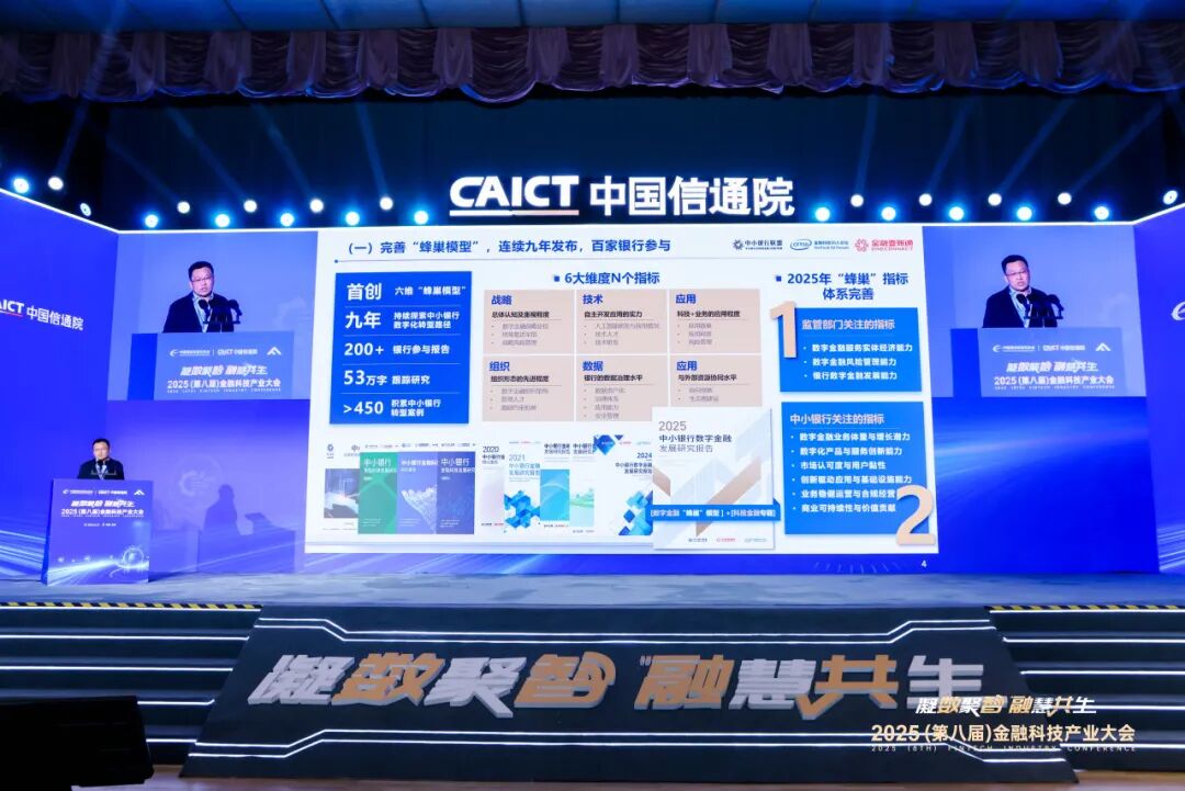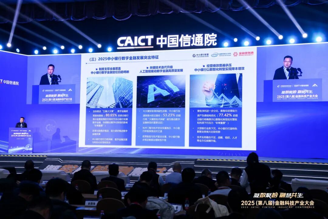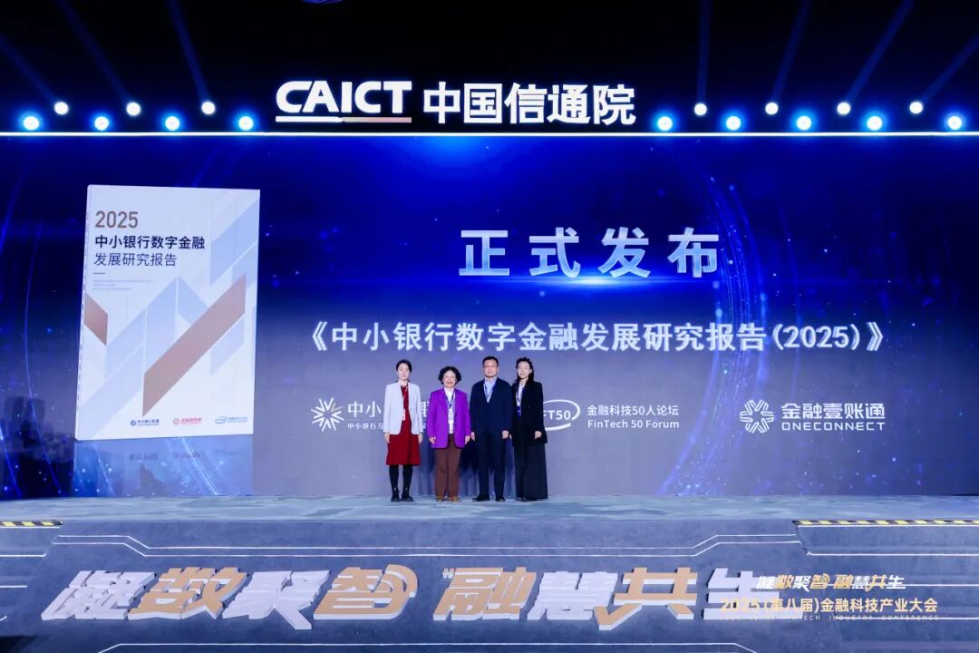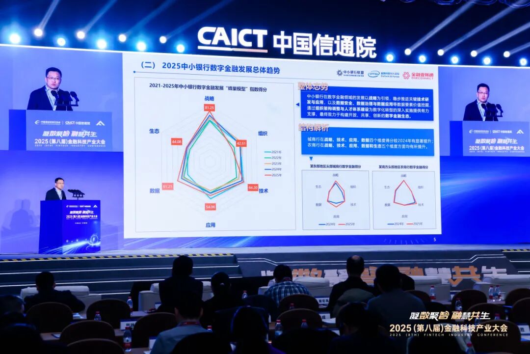 人工智能驱动数字金融高质量发展,中小银行以数智化转型实现降本增效。在12月17日举行的2025(第八届)金融科技产业大会上,中小银行互联网金融(深圳)联盟(以下简称“中小银行联盟”)联合金融科技五十人论坛(CFT50)、金融壹账通发布年度重磅研究成果《中小银行数字金融发展研究报告(2025)》(以下简称“《报告》”),立体呈现广大中小银行数字金融发展总体趋势和突出特征。CFT50青年学者、中国人民大学智慧治理战略研究院执行院长宋鹭作为报告编委会首席专家,向与会五百余位业内人士进行了全面解读。